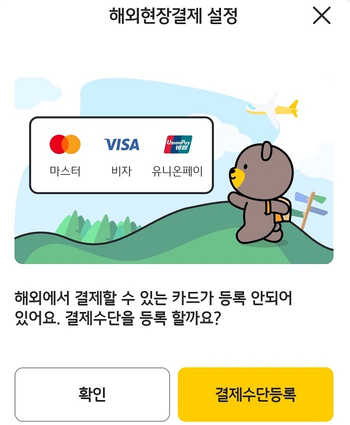 해외결제 체크카드를 사용하려는 가맹점에서 비자, 마스터카드, JCB, 유니온페이 중 일부 브랜드 카드의 사용을 제한할 수 있습니다. 소지한 체크카드의 국제 브랜드 로고와 일치하는 가맹점에서 거래할 것을 추천합니다.